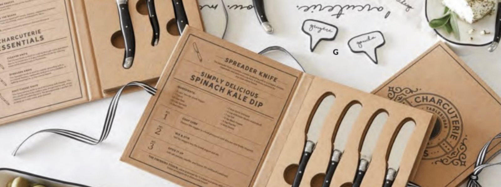 Highlighted by a handmade Vintage Brothers charcuterie board with extra board wax, our Cheese Lovers gift pack includes, black handled charcuterie essentials knives, a cheese paper roll, black handled charcuterie spreaders, and a charcuterie shopping list (because who doesn't need one of those??!)